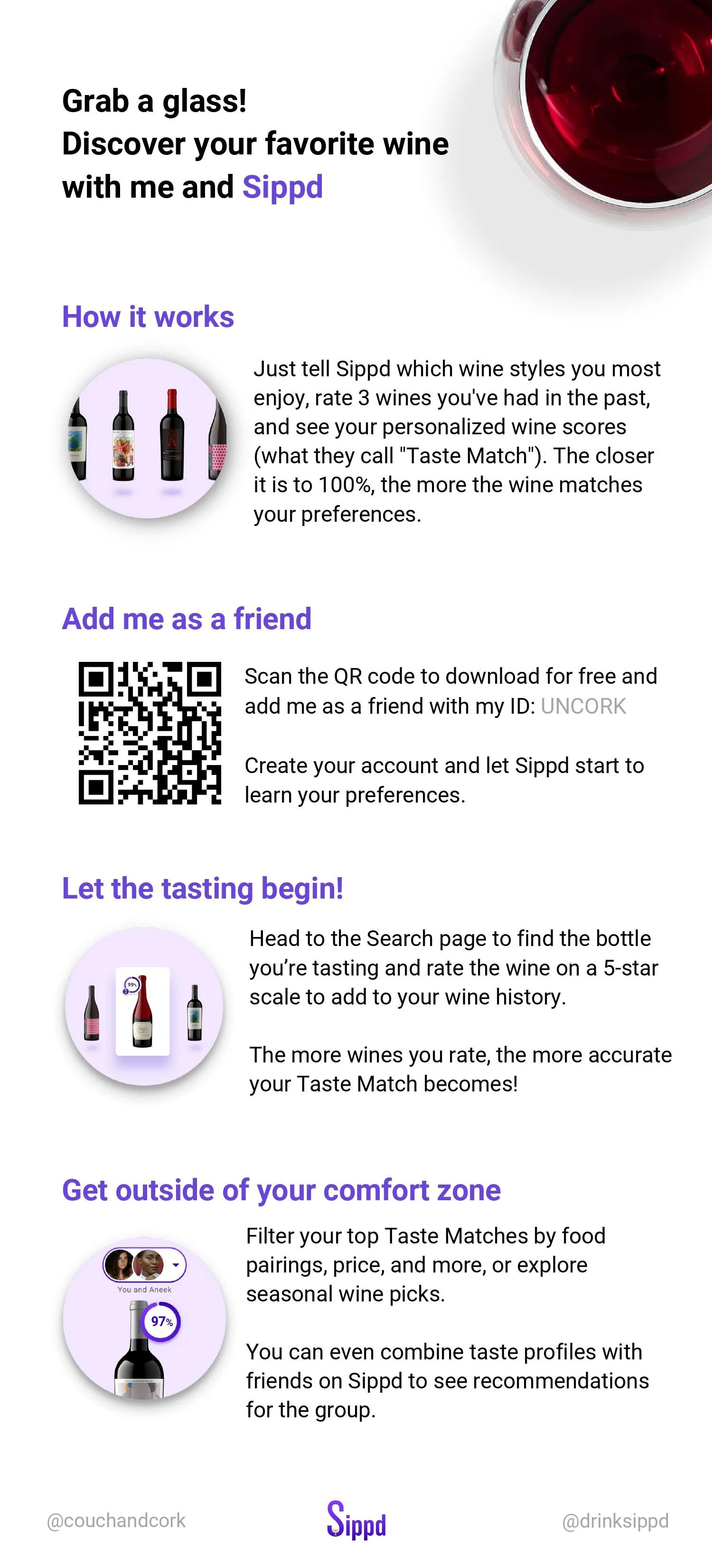 Scan the QR code or click HERE to download and add us as a friend with our Sippd ID: UNCORK.